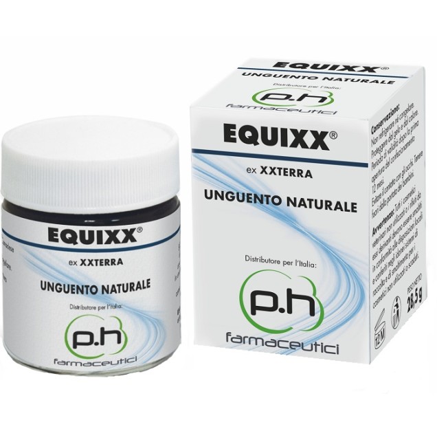 Equixx è una miscela di erbe e polvere di Bloodroot (Sanguinaria Canadensis) con cloruro di zinco, combinati e mescolati in una emulsione color marrone di facile utilizzo. La Bloodrot contiene alcaloidi come la Sanguinaria (componente principale), la Chelaritrina e Protopina.